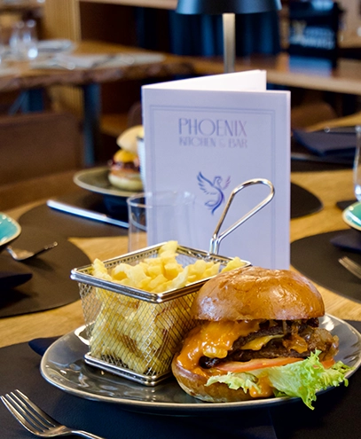 Willkommen in der Phoenix Kitchen & Bar: moderne Küche, starke Cocktails und ein Ambiente, das zum Bleiben einlädt – ob Date Night, Afterwork oder Dinner mit Freunden.