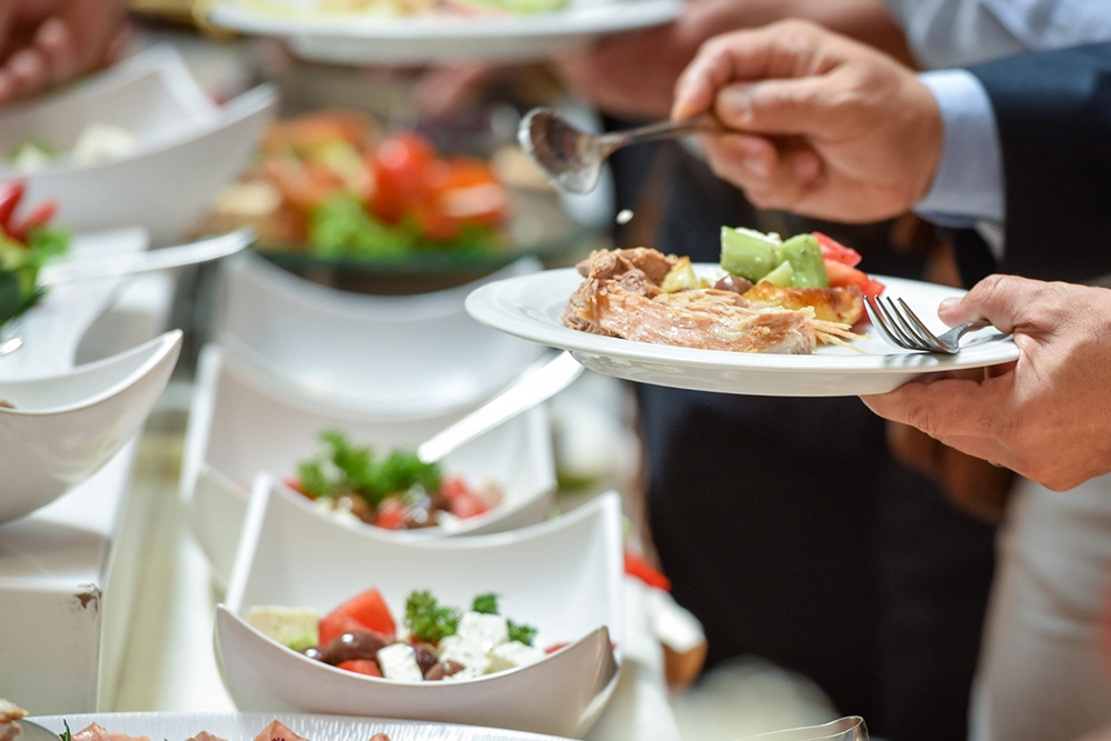 Von Aufbau bis Abbau: Wir stellen auf Wunsch Servicepersonal, Geschirr, Gläser und Warmhalte-Equipment – damit Ablauf und Präsentation professionell sitzen.